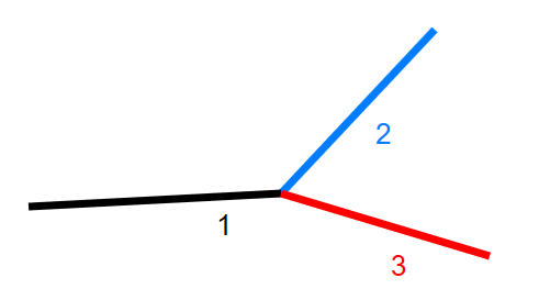 - Linienzüge verbunden, welche einen gemeinsamen Vertex haben, der kein Knoten ist.